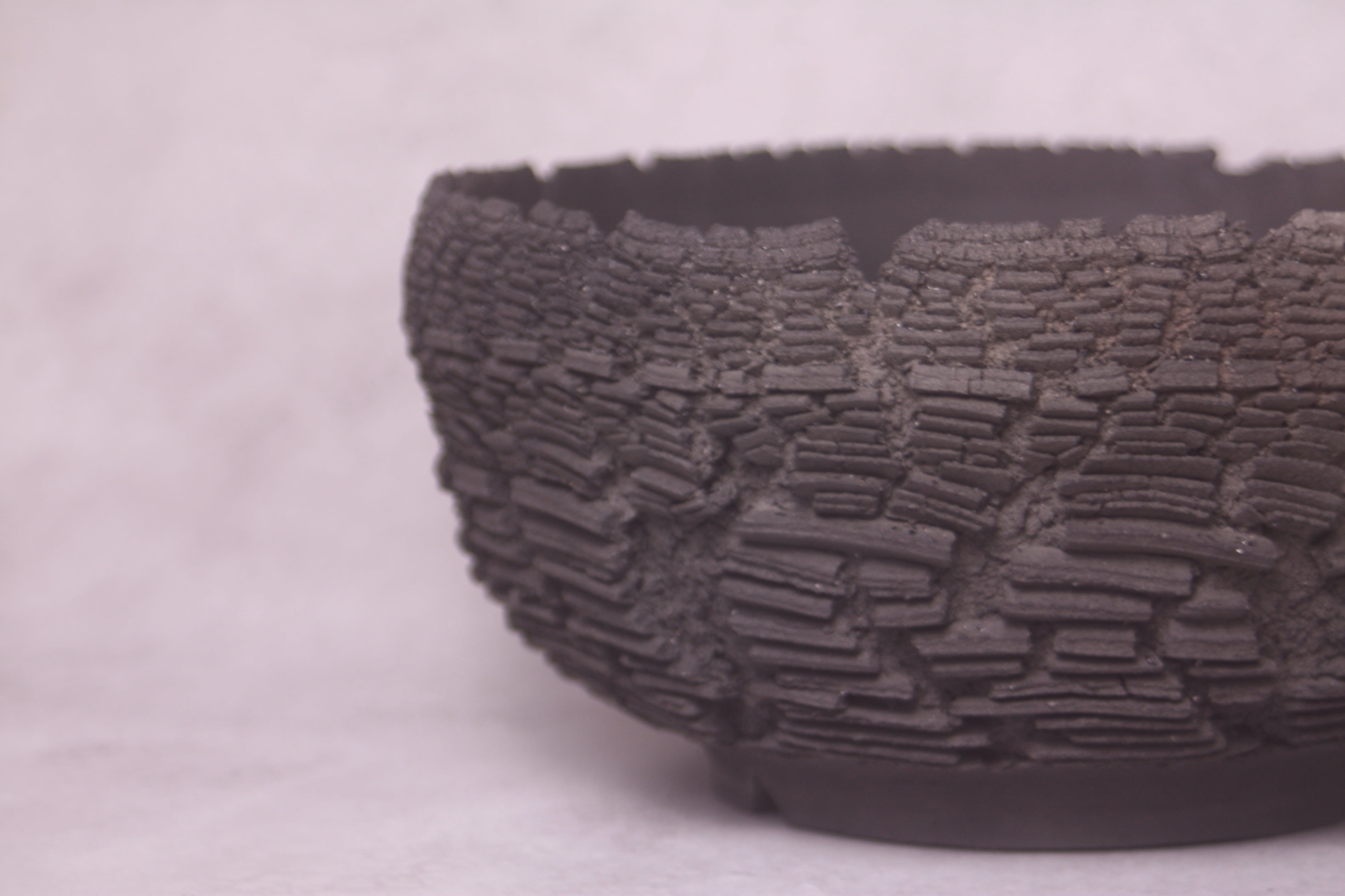 接著將其埋入竹炭之中,在匣缽內燒製。