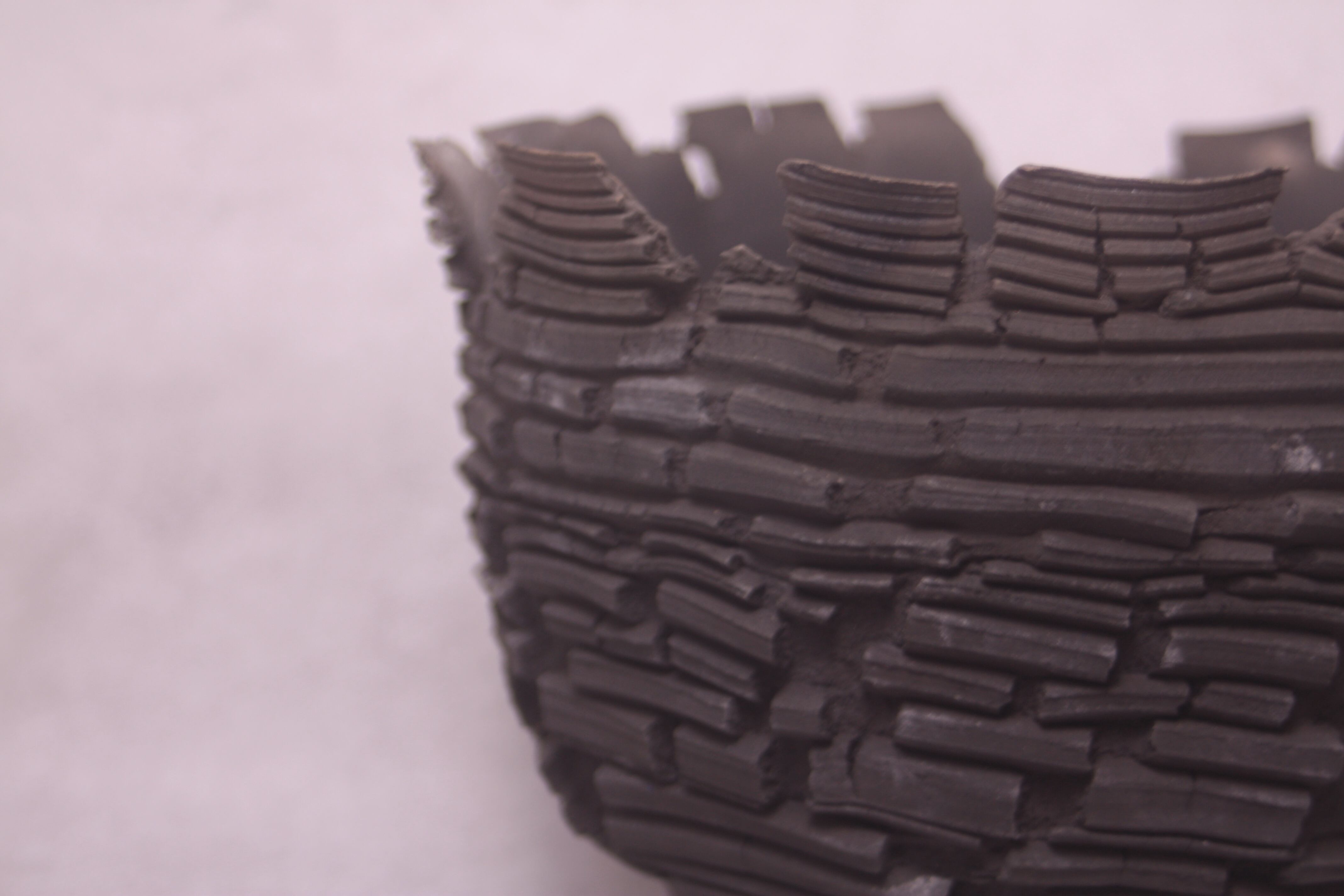 植木鉢の表面に意図的に凹凸をつけた後亀裂を作り、