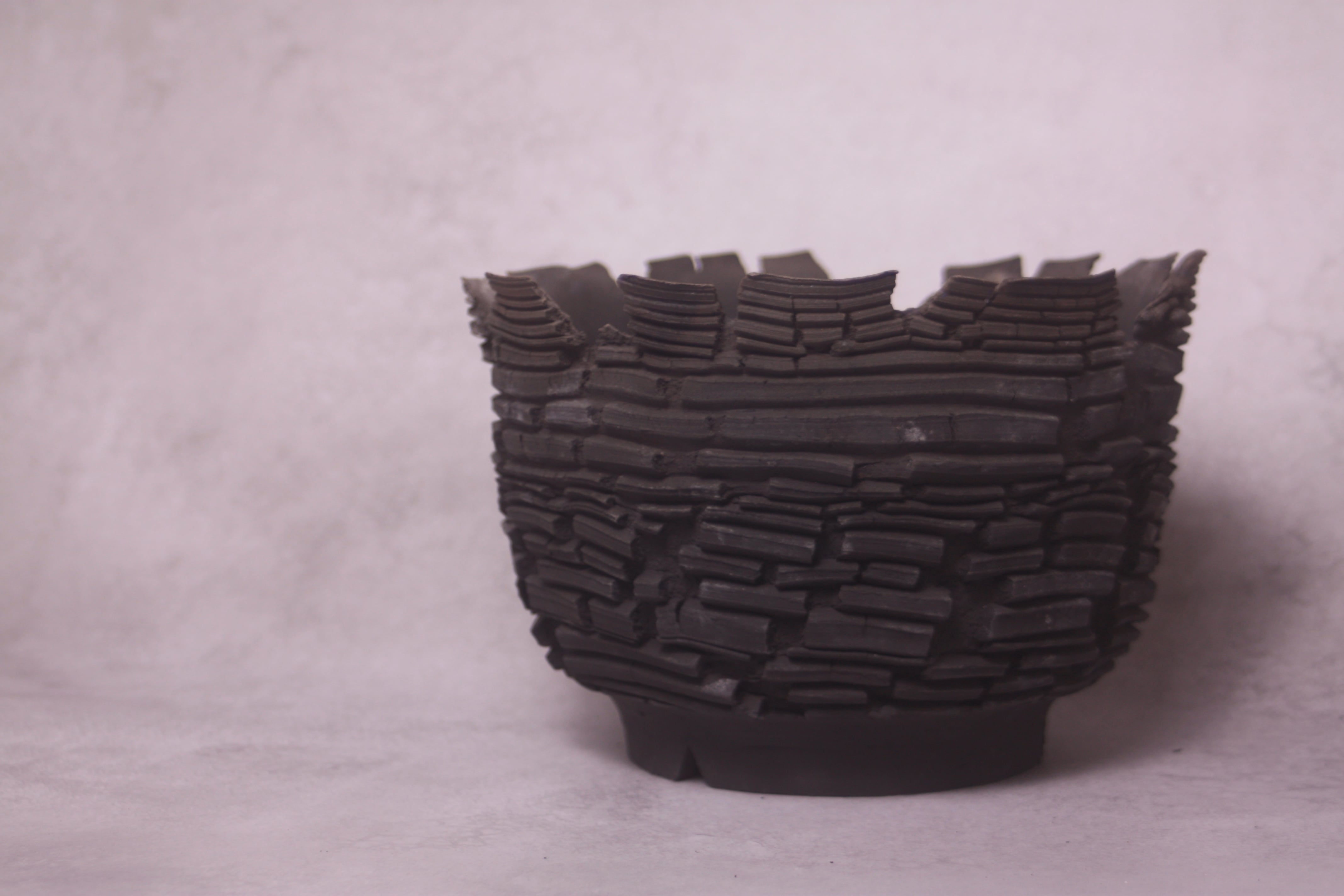 After deliberately creating uneven textures and cracks on the planter’s surface,