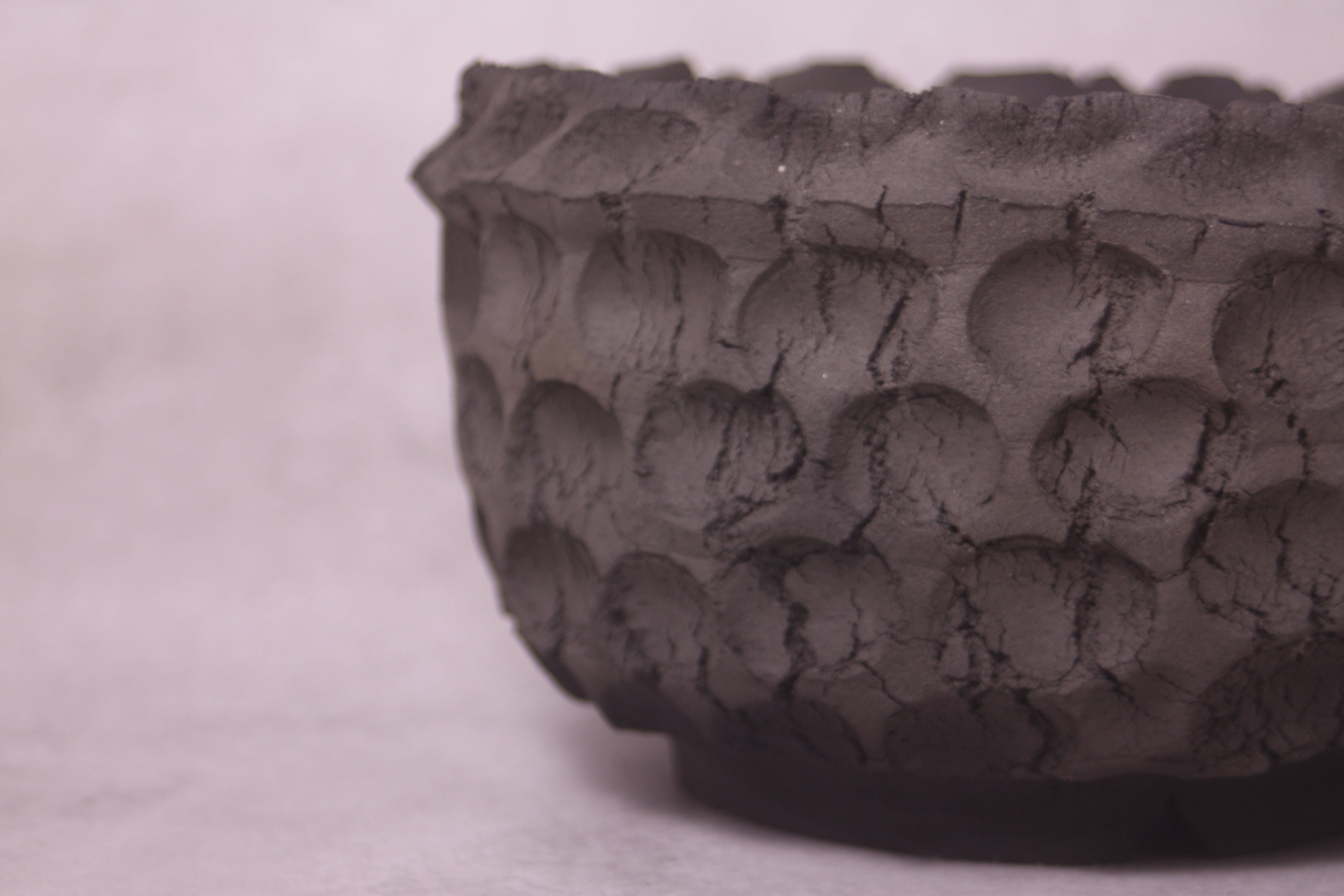 After deliberately creating uneven textures and cracks on the planter’s surface,