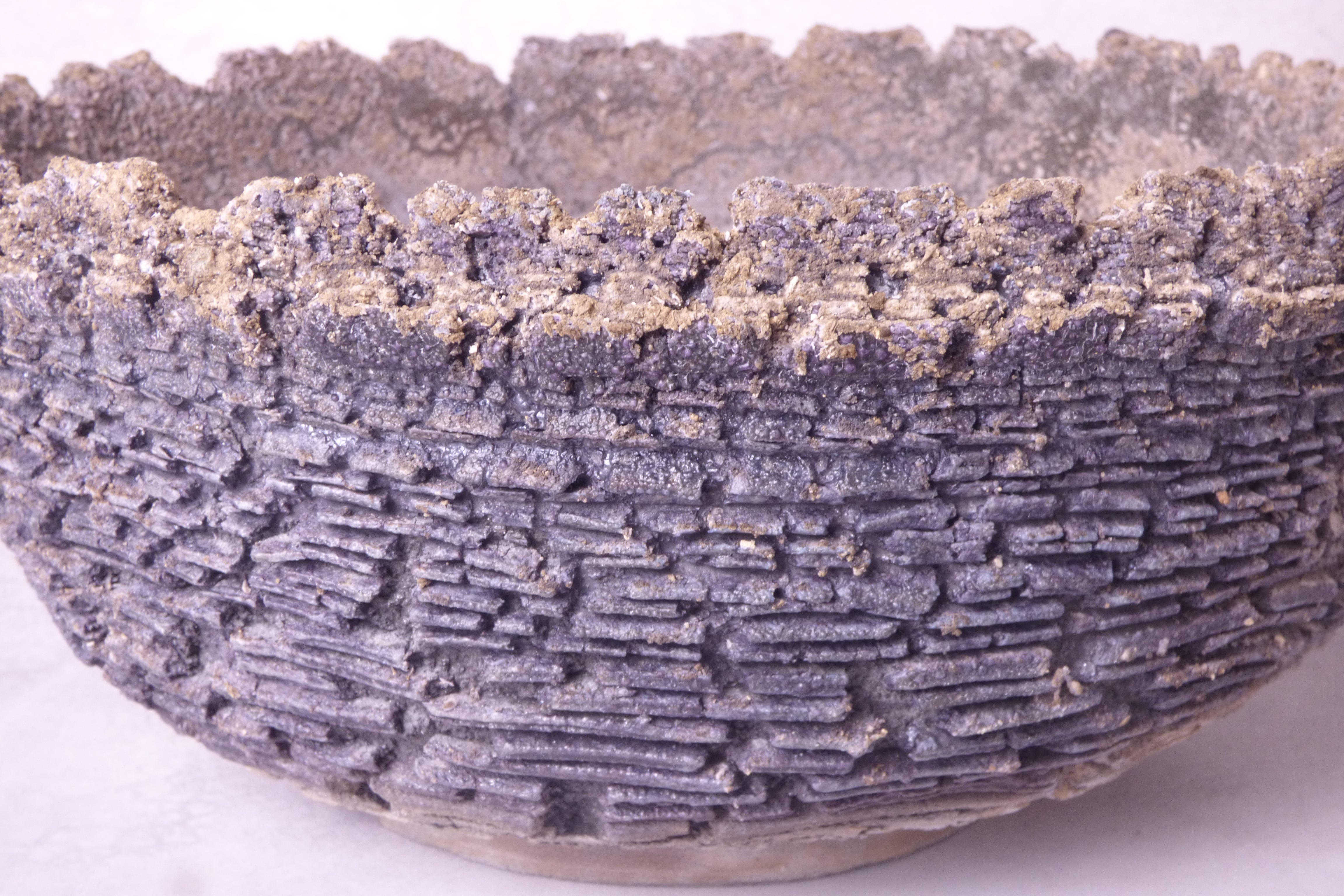 植木鉢の表面に意図的に凹凸をつけた後亀裂を作り、