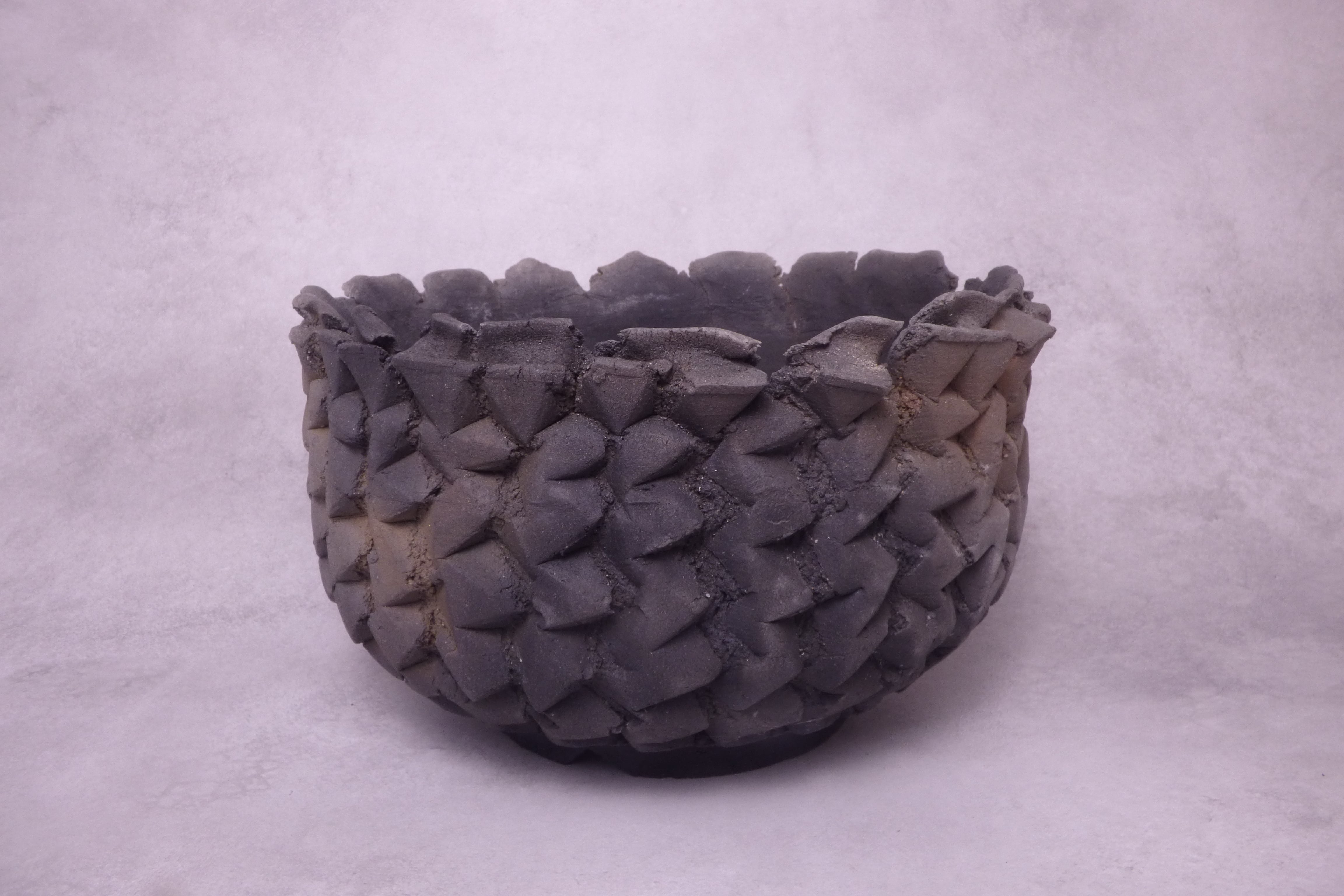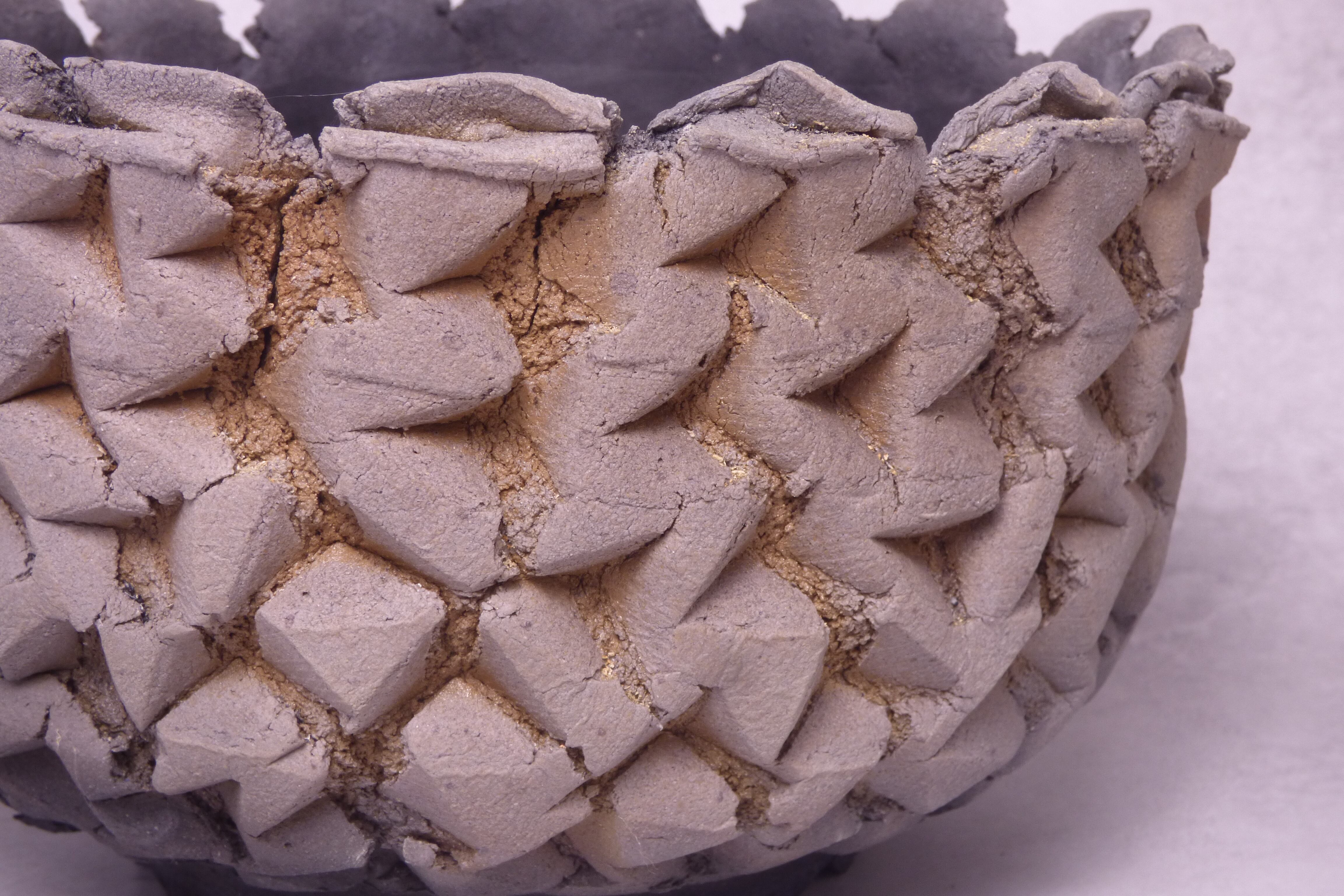 植木鉢の表面に意図的に凹凸をつけた後亀裂を作り、