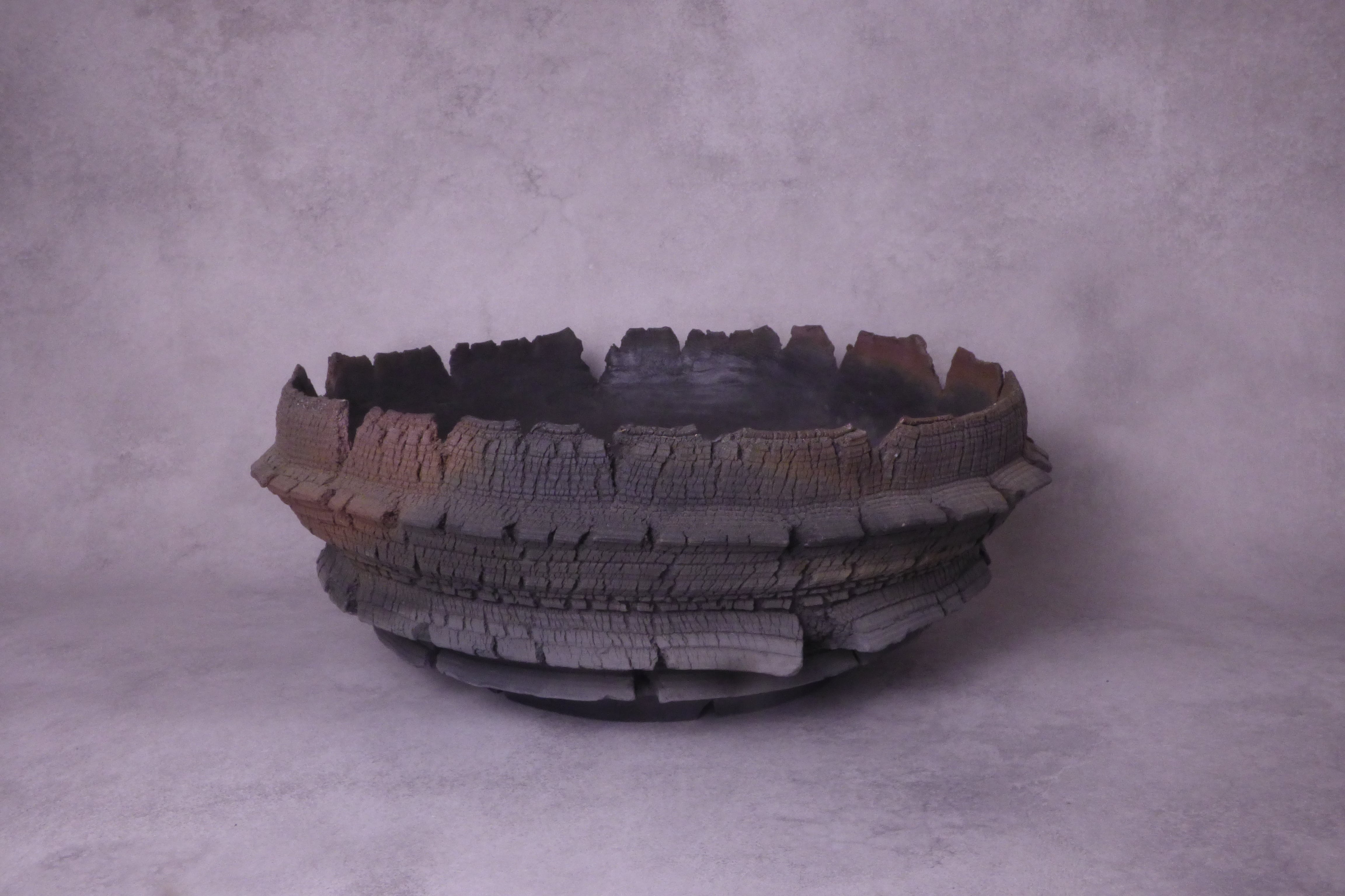 After deliberately creating uneven textures and cracks on the planter’s surface,