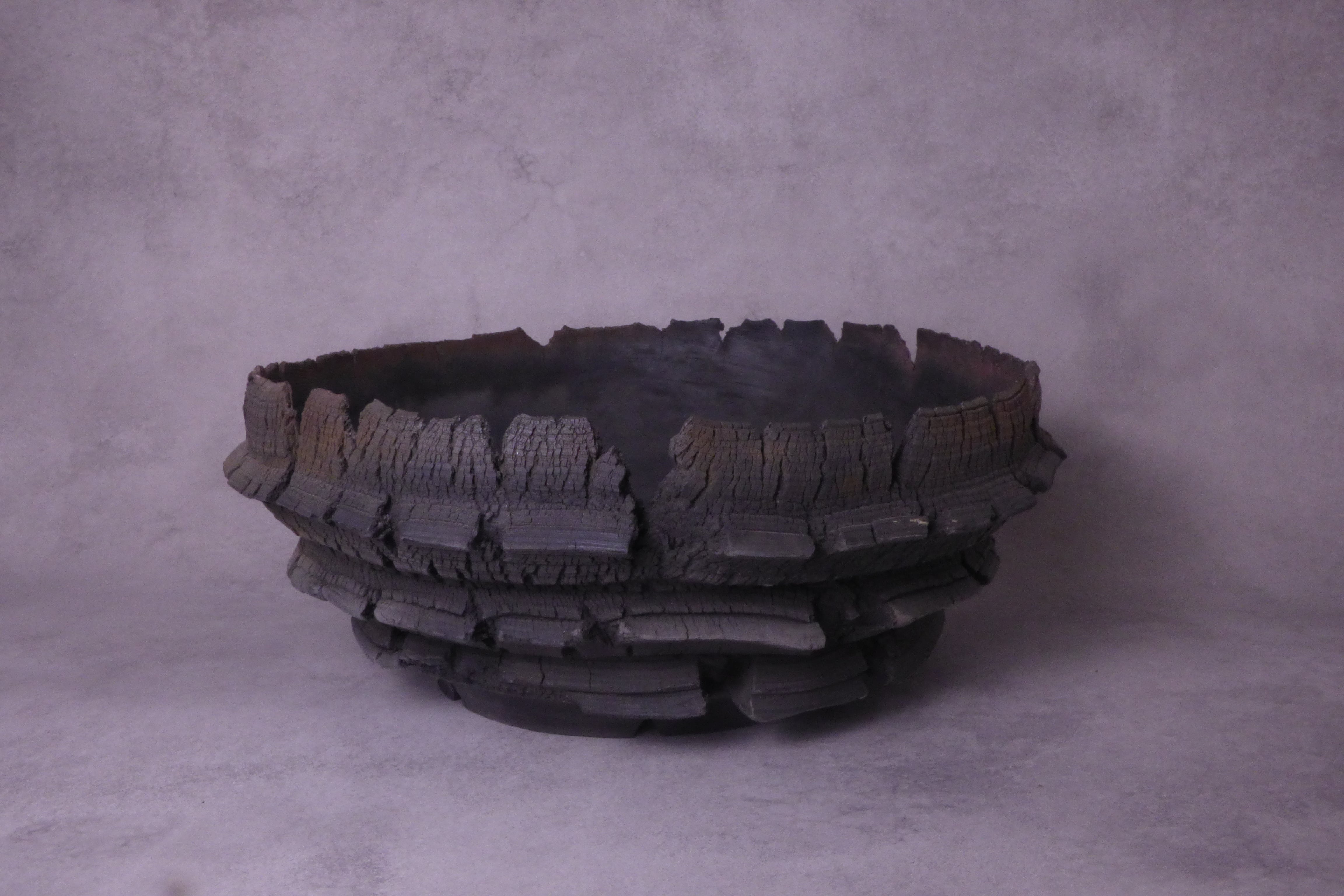 接著將其埋入竹炭之中,在匣缽內燒製。