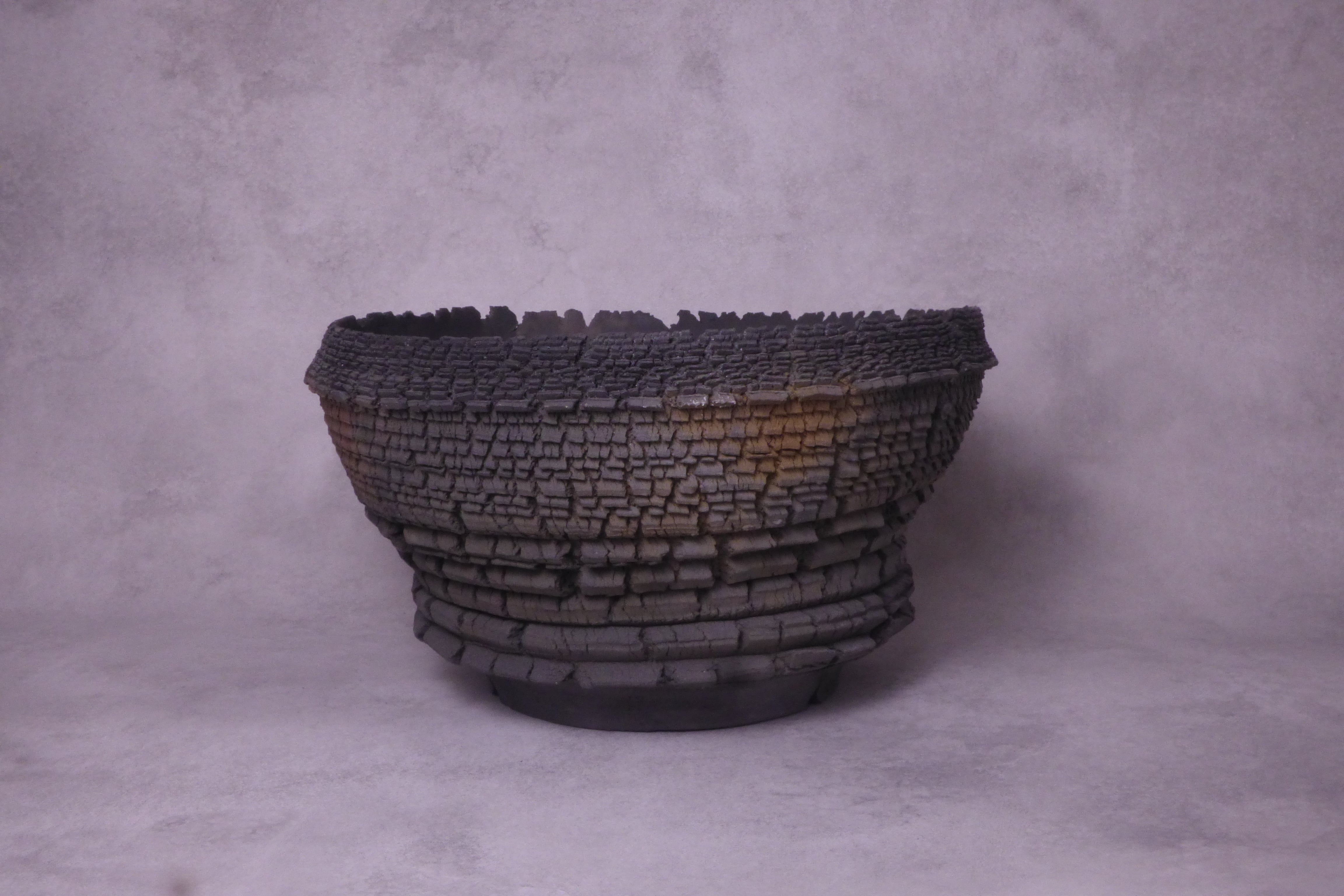 植木鉢の表面に意図的に凹凸をつけた後亀裂を作り、
