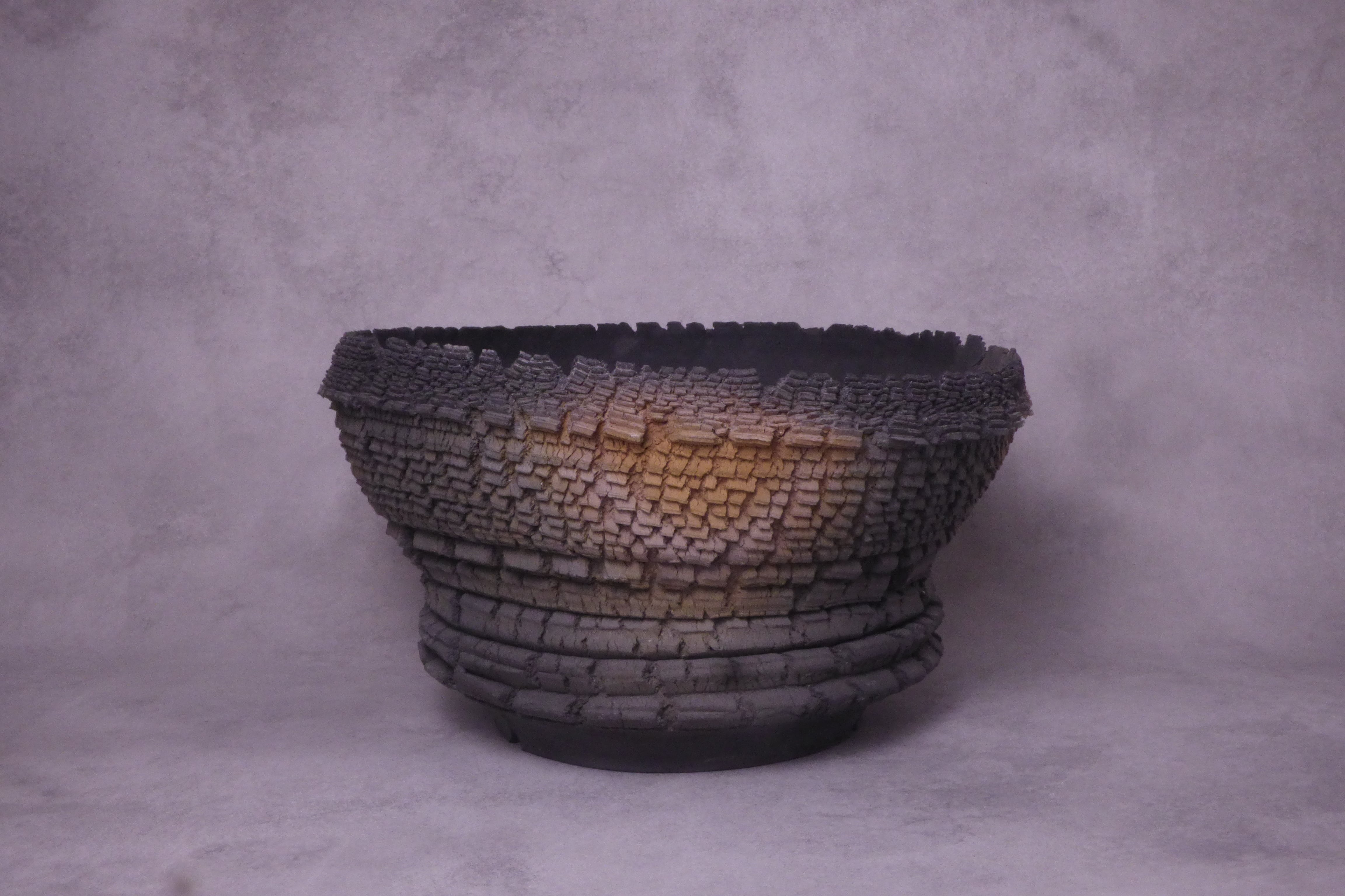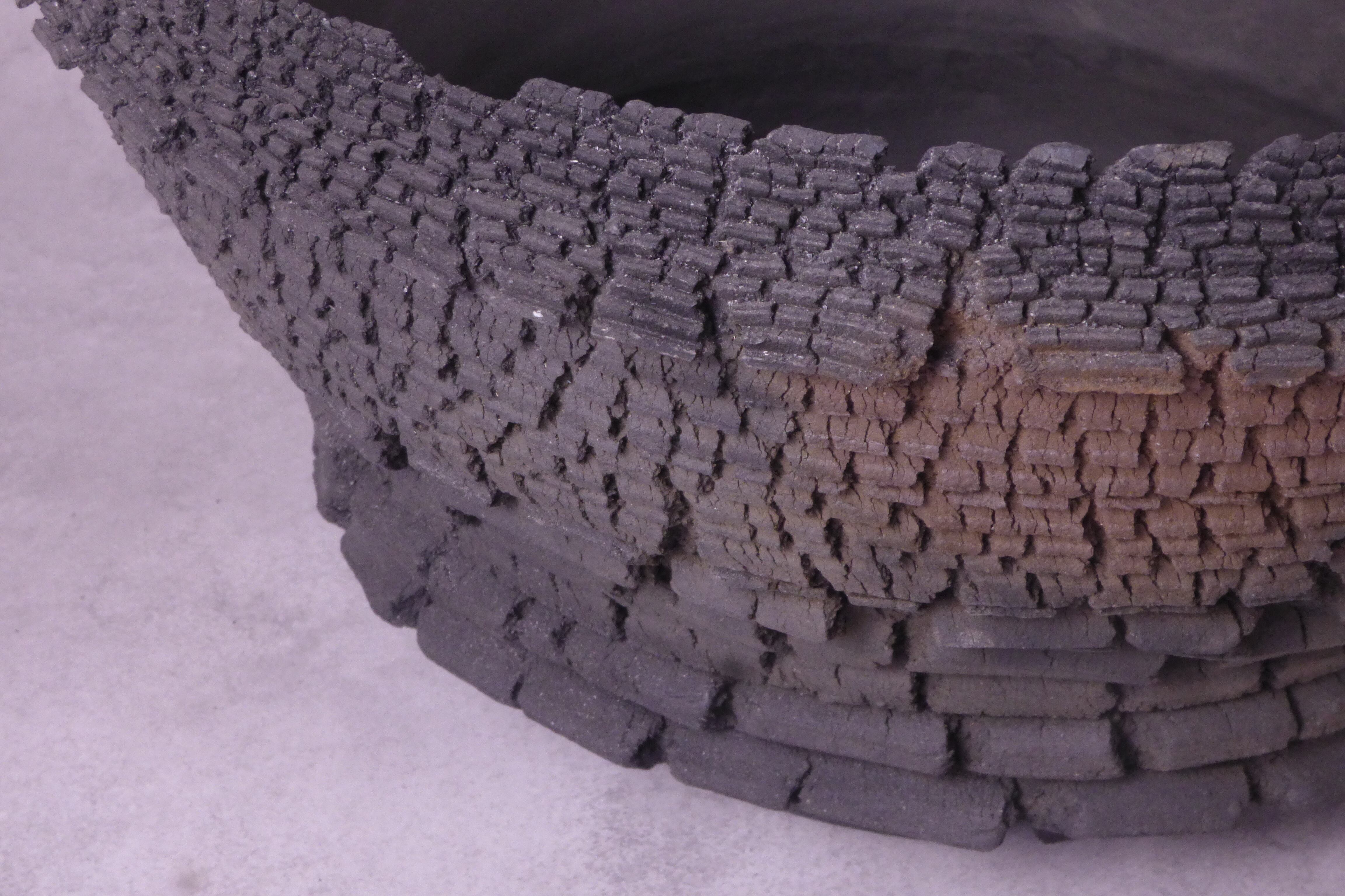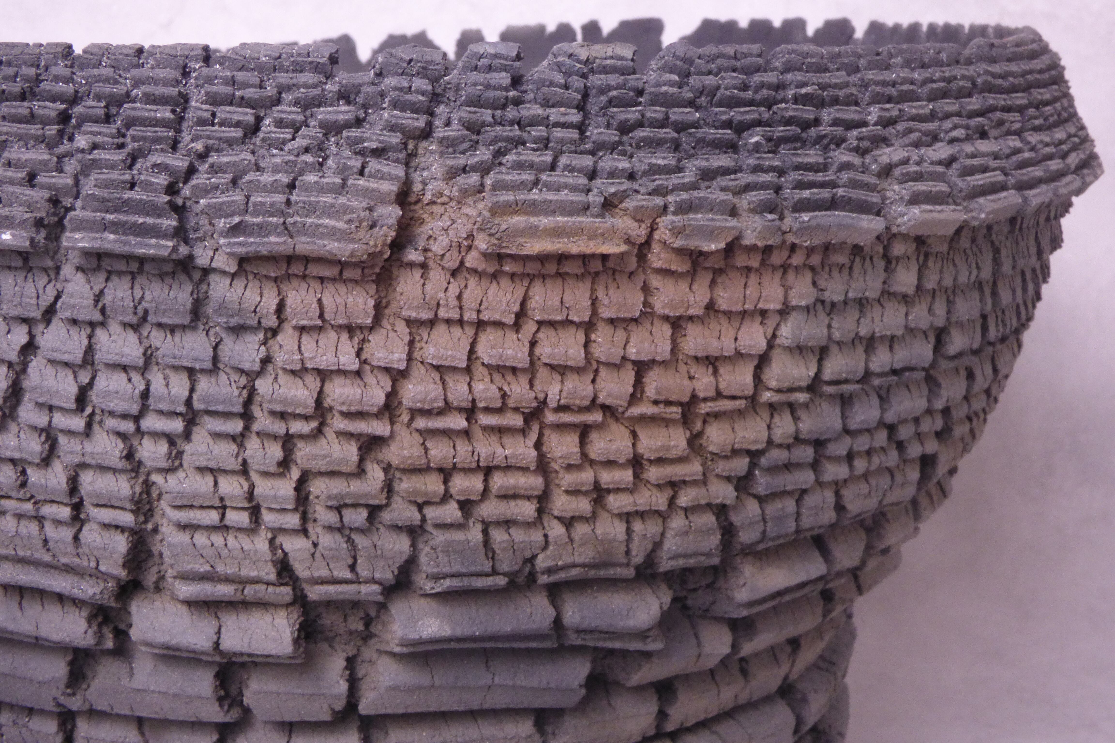 After deliberately creating uneven textures and cracks on the planter’s surface,