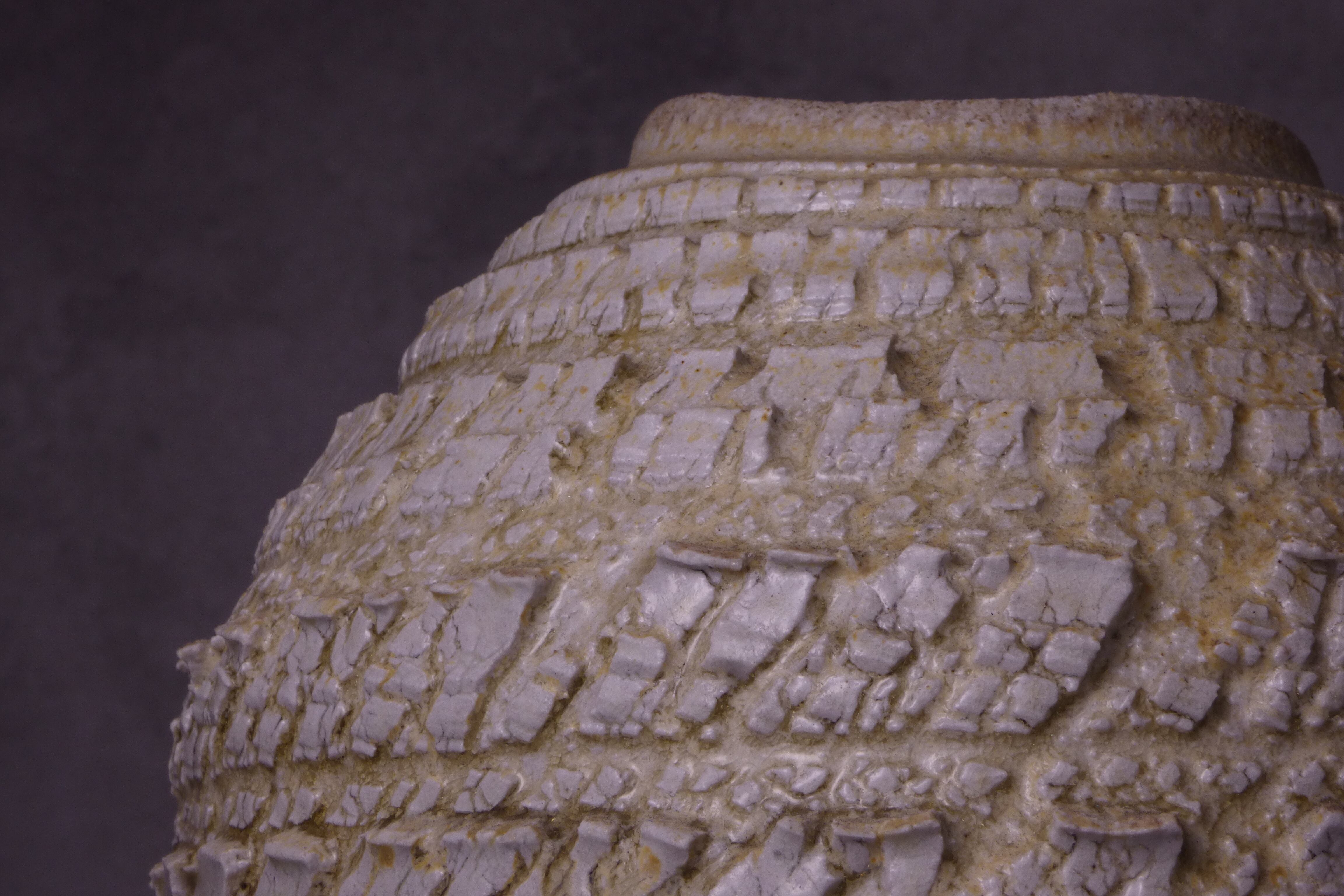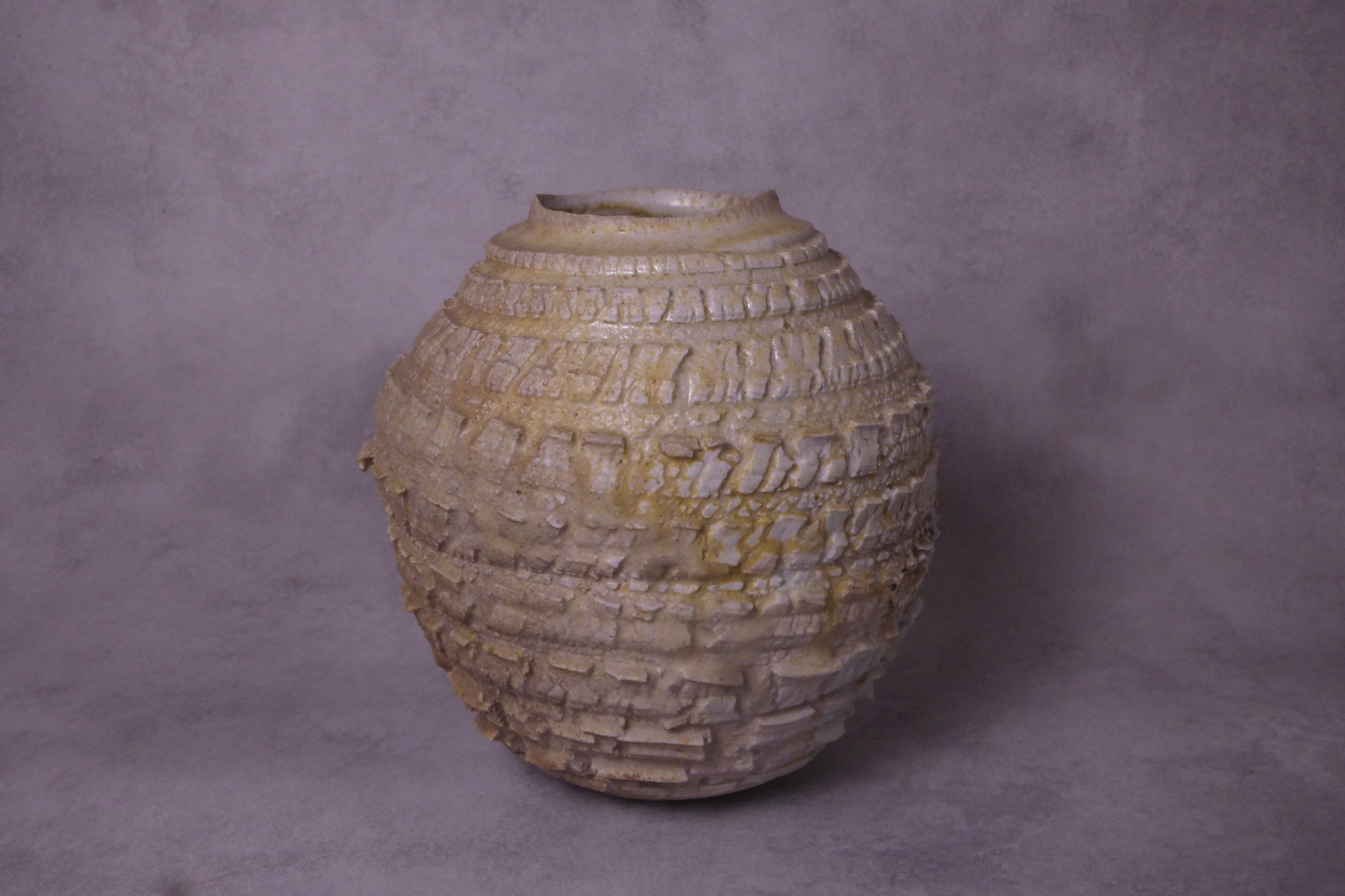 This vessel was crafted in a traditional wood-fired kiln, specifically an ancient "anagama" kiln,