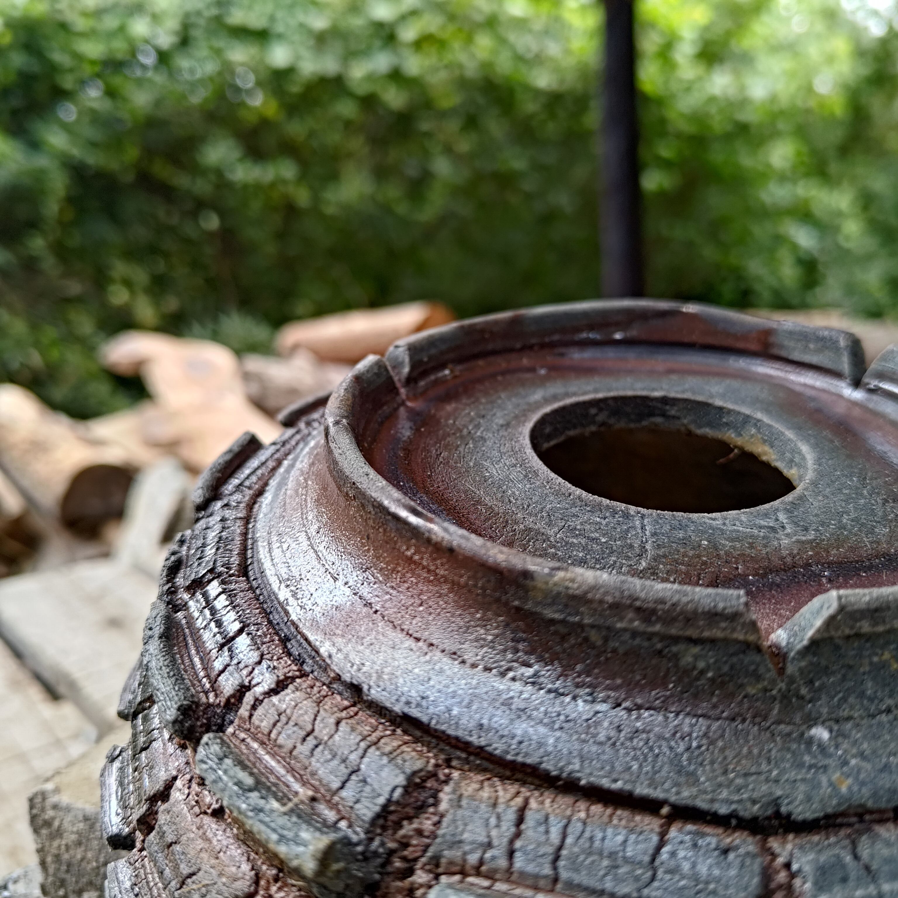 The unique appearance of the piece is something that gas kilns or electric kilns cannot replicate.