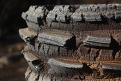 表面に灰が被り、炎が通り抜けた模様がわかります。