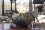 こちらの植木鉢は匣鉢に入れて益子産の竹炭と籾殻に埋めて焼成しています。