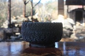 這個盆器是在傳統的柴窯——也就是古老的「穴窯」中,經過三天三夜薪火淬煉而成。
