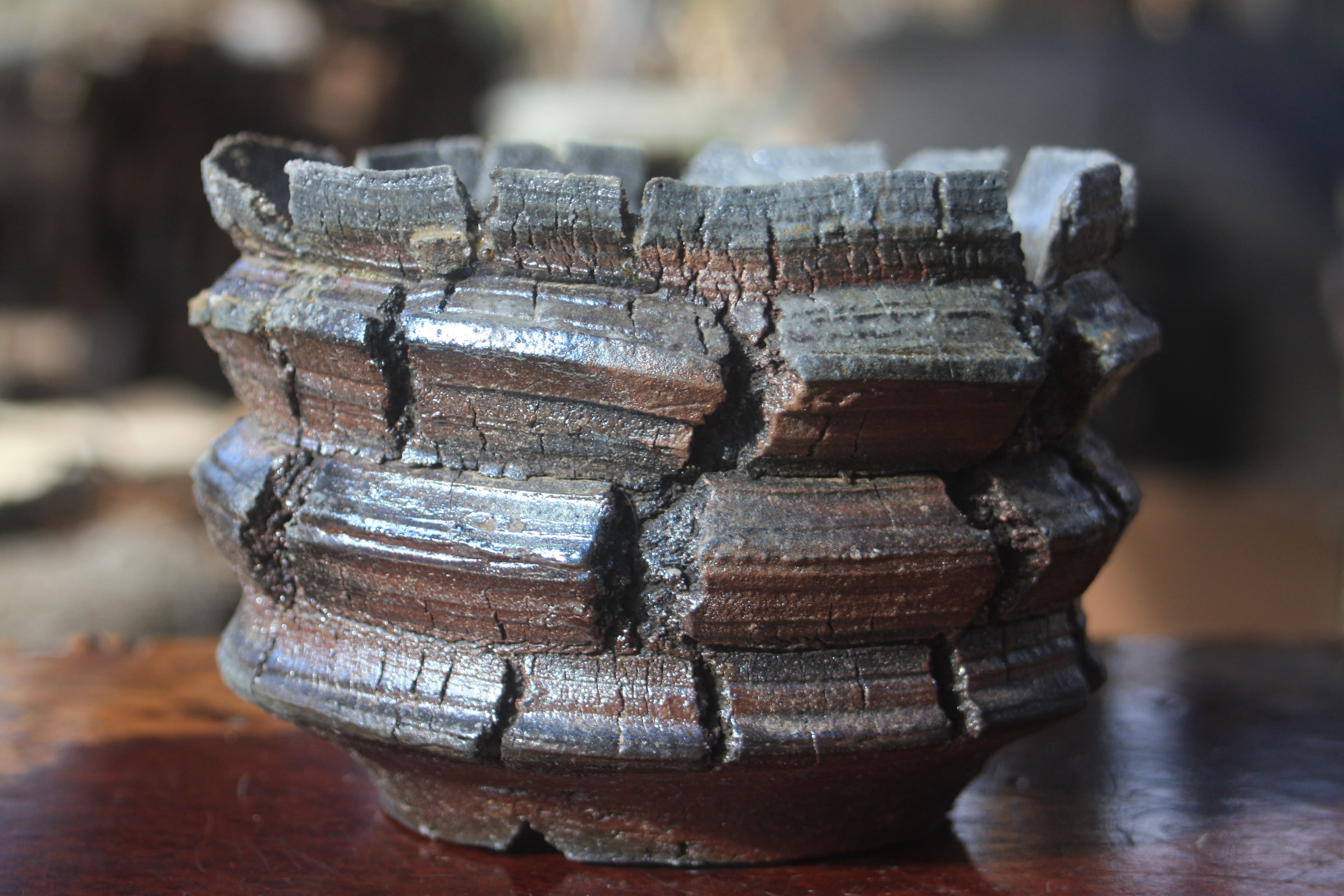 The unique appearance of the piece is something that gas kilns or electric kilns cannot replicate.