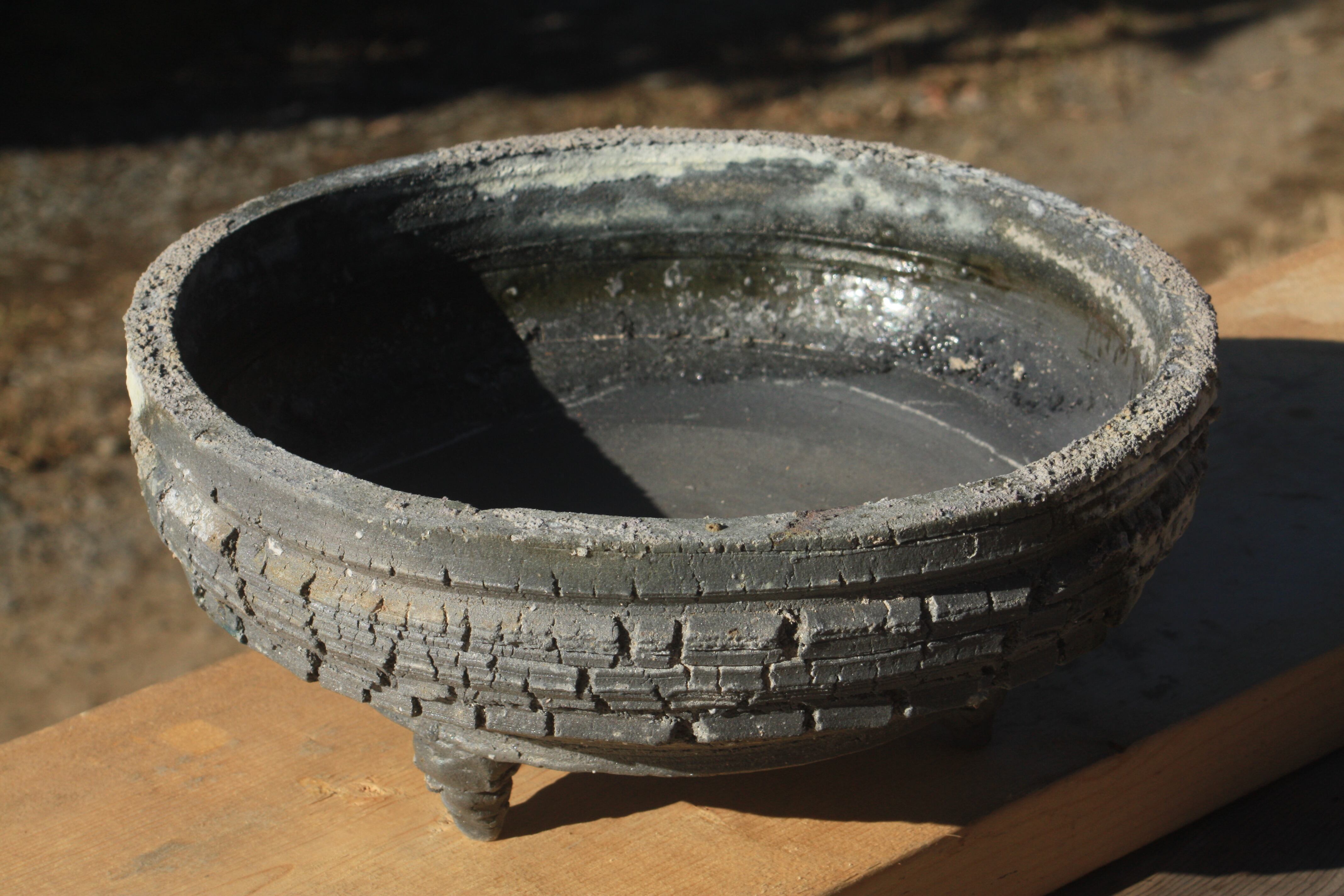 This planter was shaped and placed into a sagger, buried in ash produced from an anagama kiln, and fired.