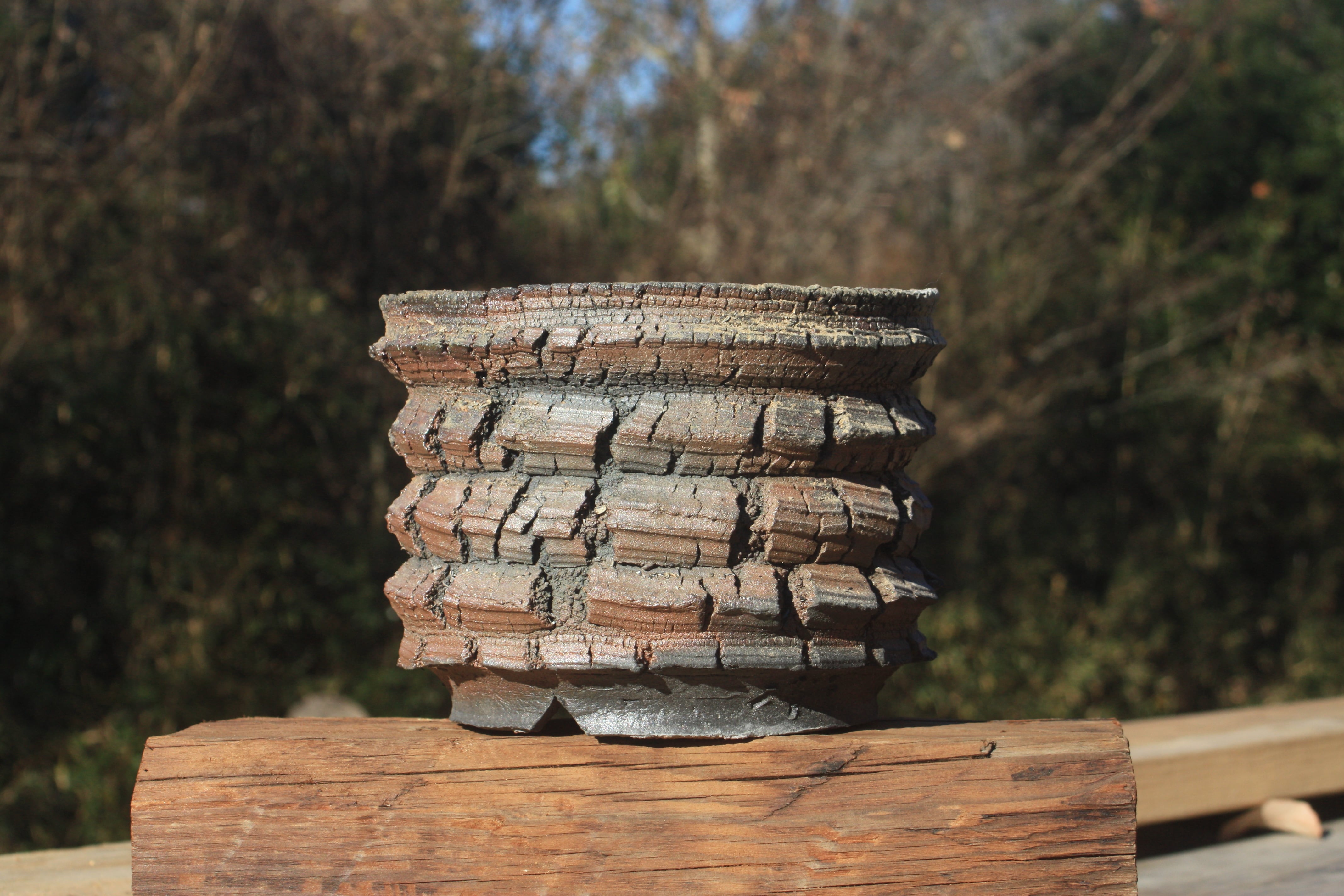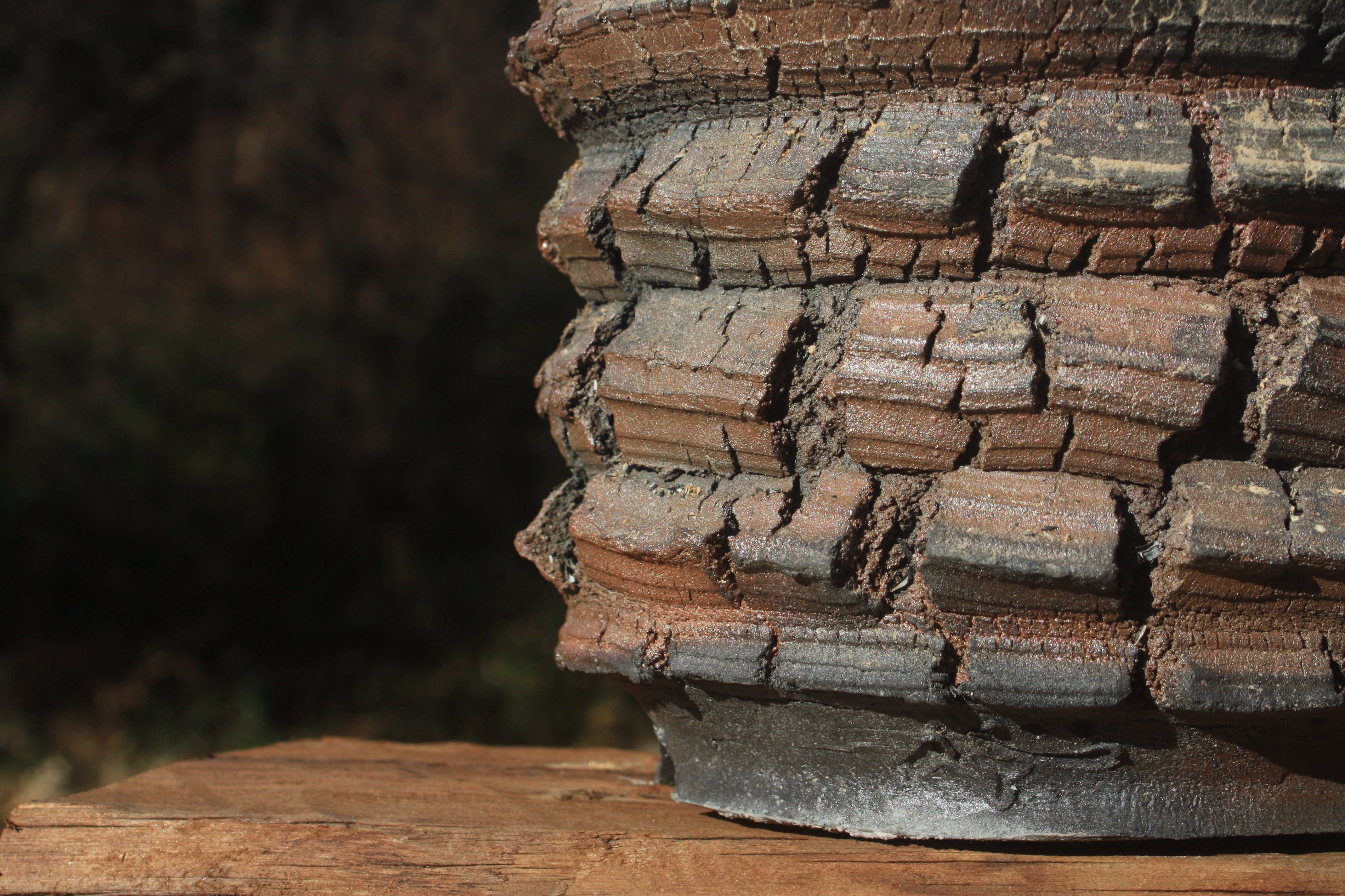 益子赤土ブレンドを薪で炭化焼成した後に再度炭に詰めて焼成しました。